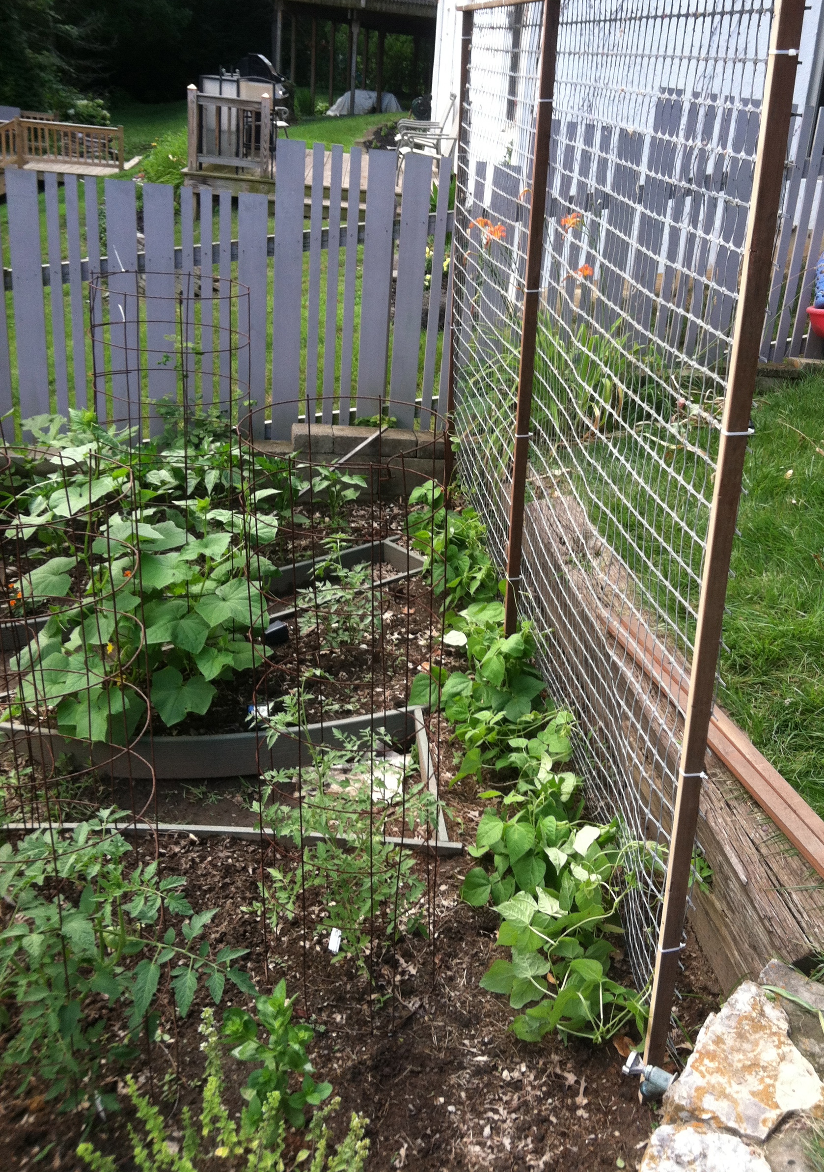 After we all cooled down, the boys help pick broccoli. Unlike the broccoli they were picking from their garden, these broccoli heads were ginormous. (But I guess if you don’t have chicken pecking at them constantly your broccoli plants would grow a little better.)