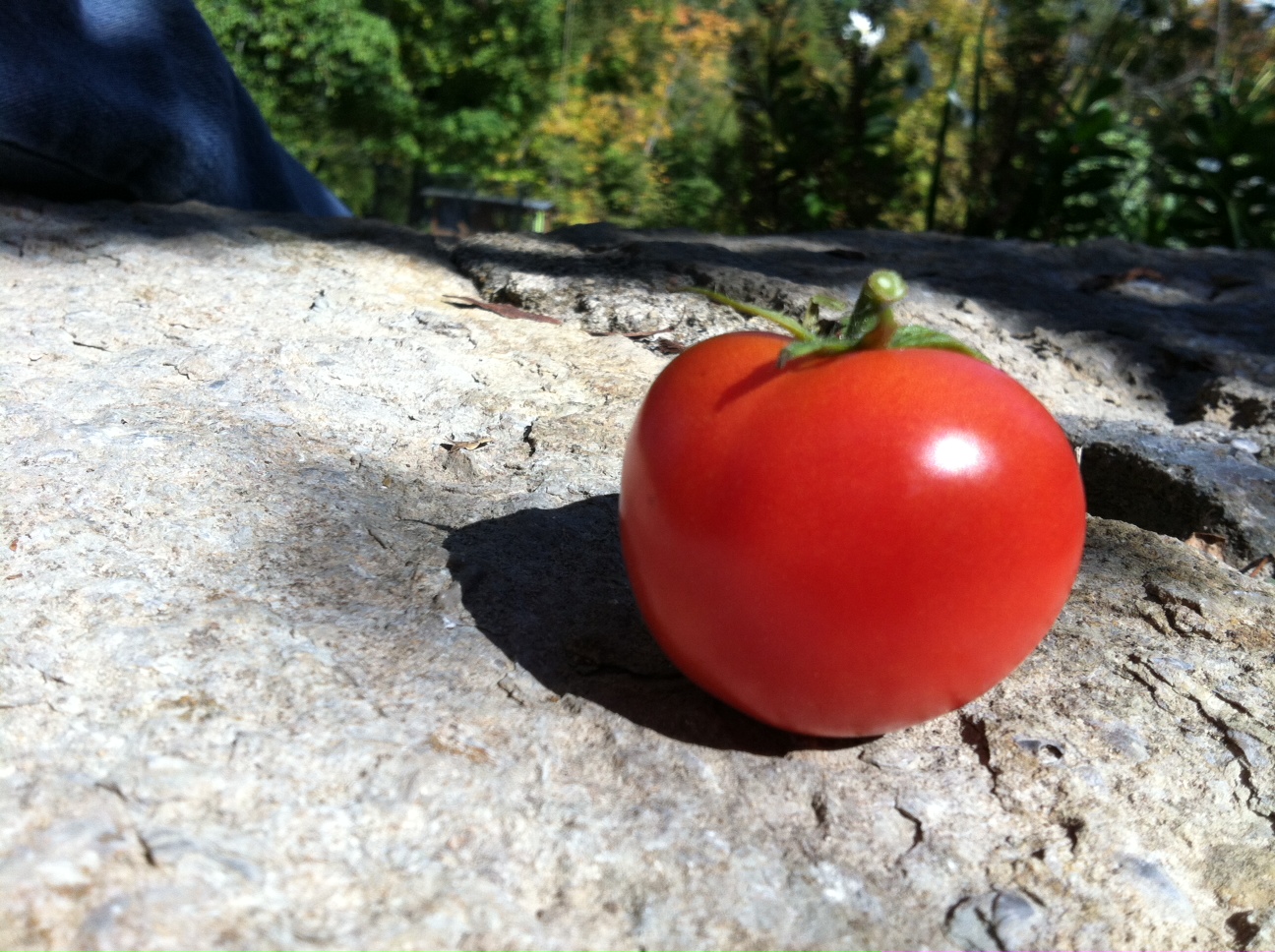 the al-kuffa tomatoes that were planted are still doing great. they’re such an odd plant. compact plant with dark leaves and almost perfect fruit. the one in the picture was picked last week.